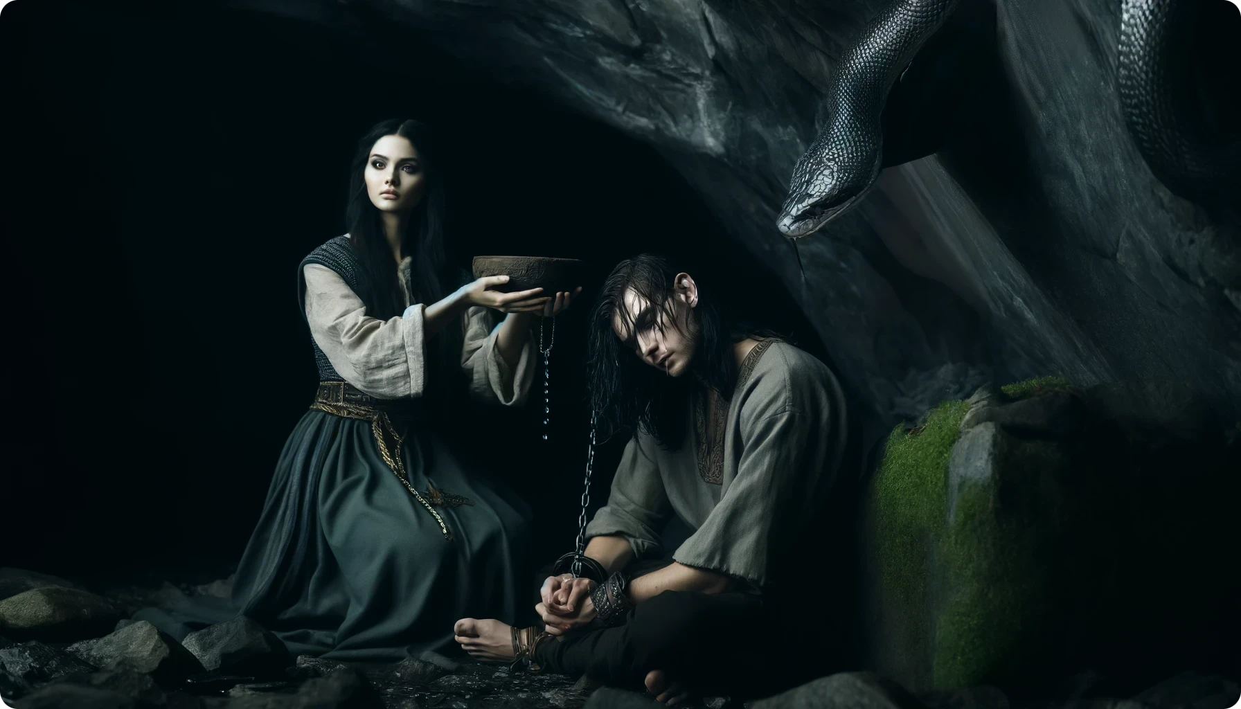 platziert aus purer Freude am Quälen noch eine Giftschlange über seinem Kopf, deren Gift unbarmherzig in Lokis