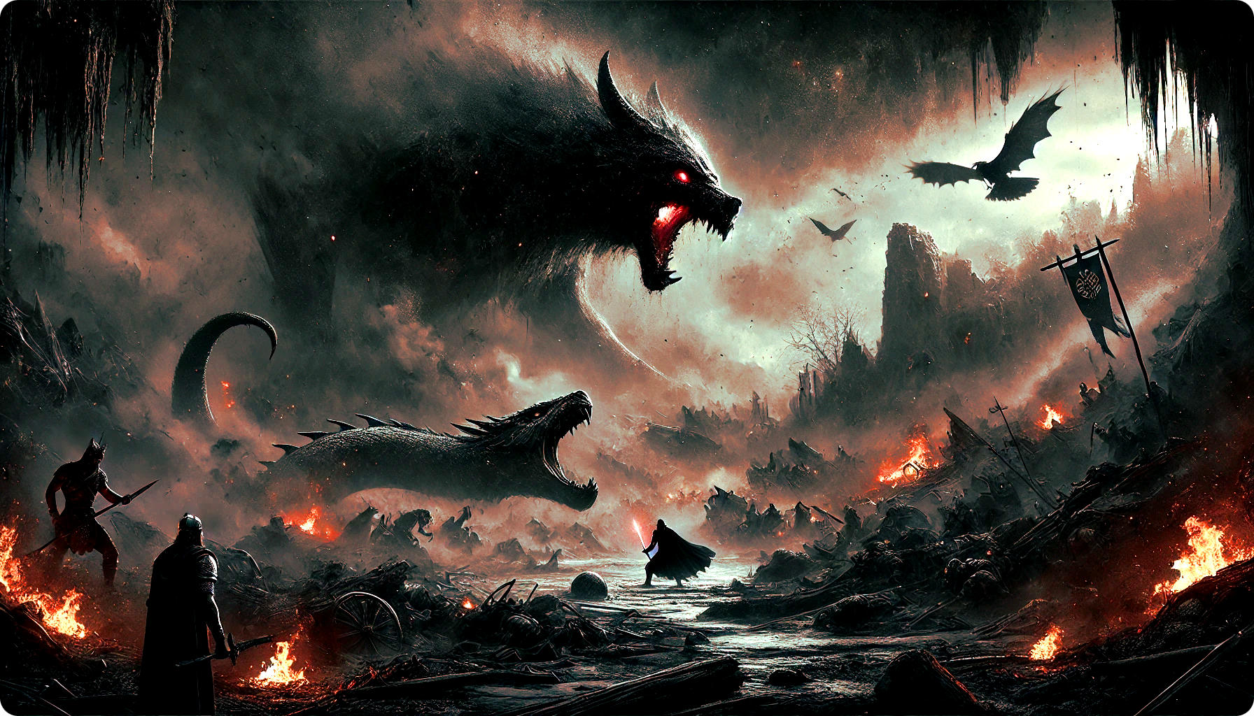 Riesen heran und Loki ist ihr Steuermann, während Surtur