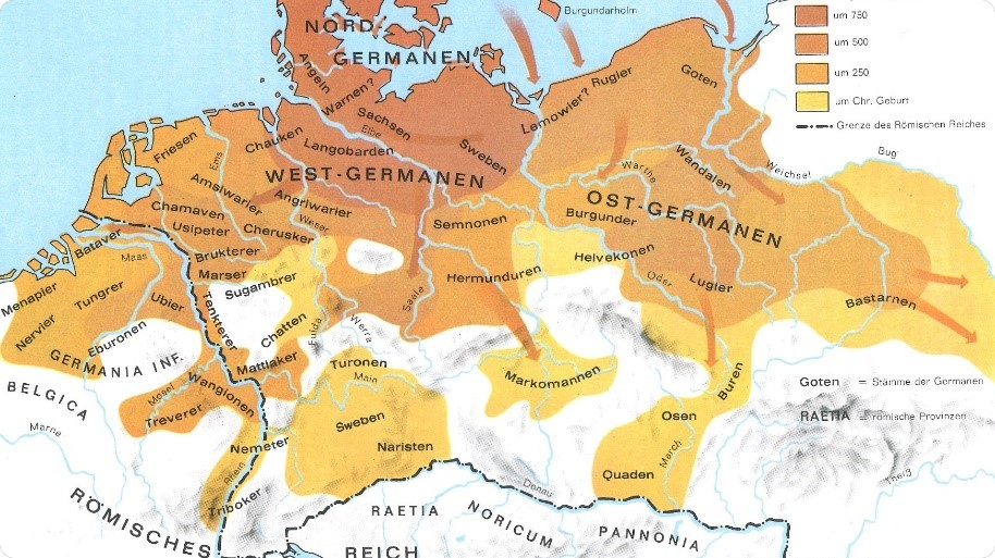 Nachbarn zuzuordnen sind. Grundlegend teilt man sie in West-, Ost- und Nordgermanen, obwohl es auch noch andere gängige