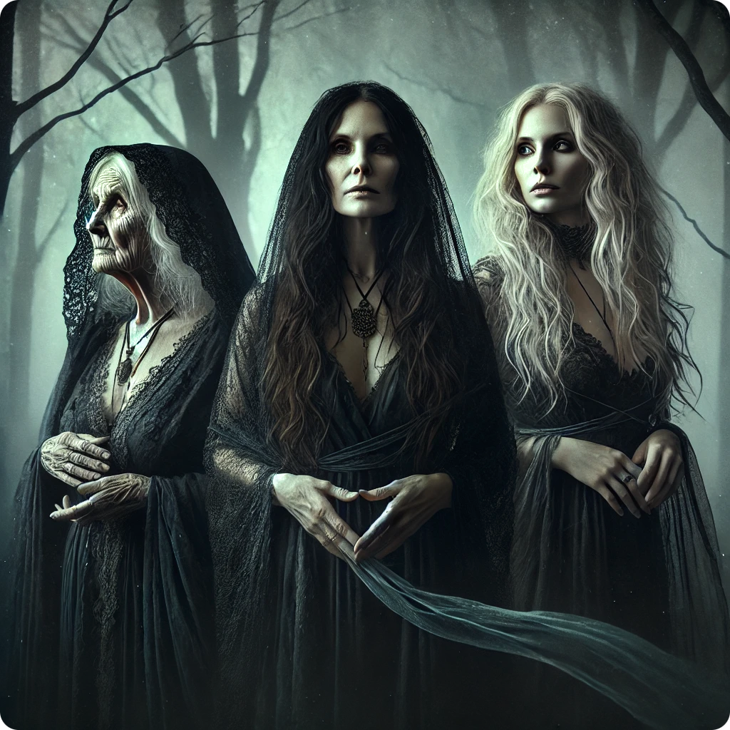 Die Nornen sind das Schicksal. Sie stehen für den Dualismus von Gutem und Bösem. Es sind drei an der Zahl und sie hören auf Urd,